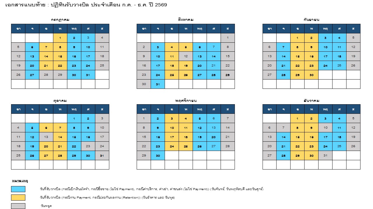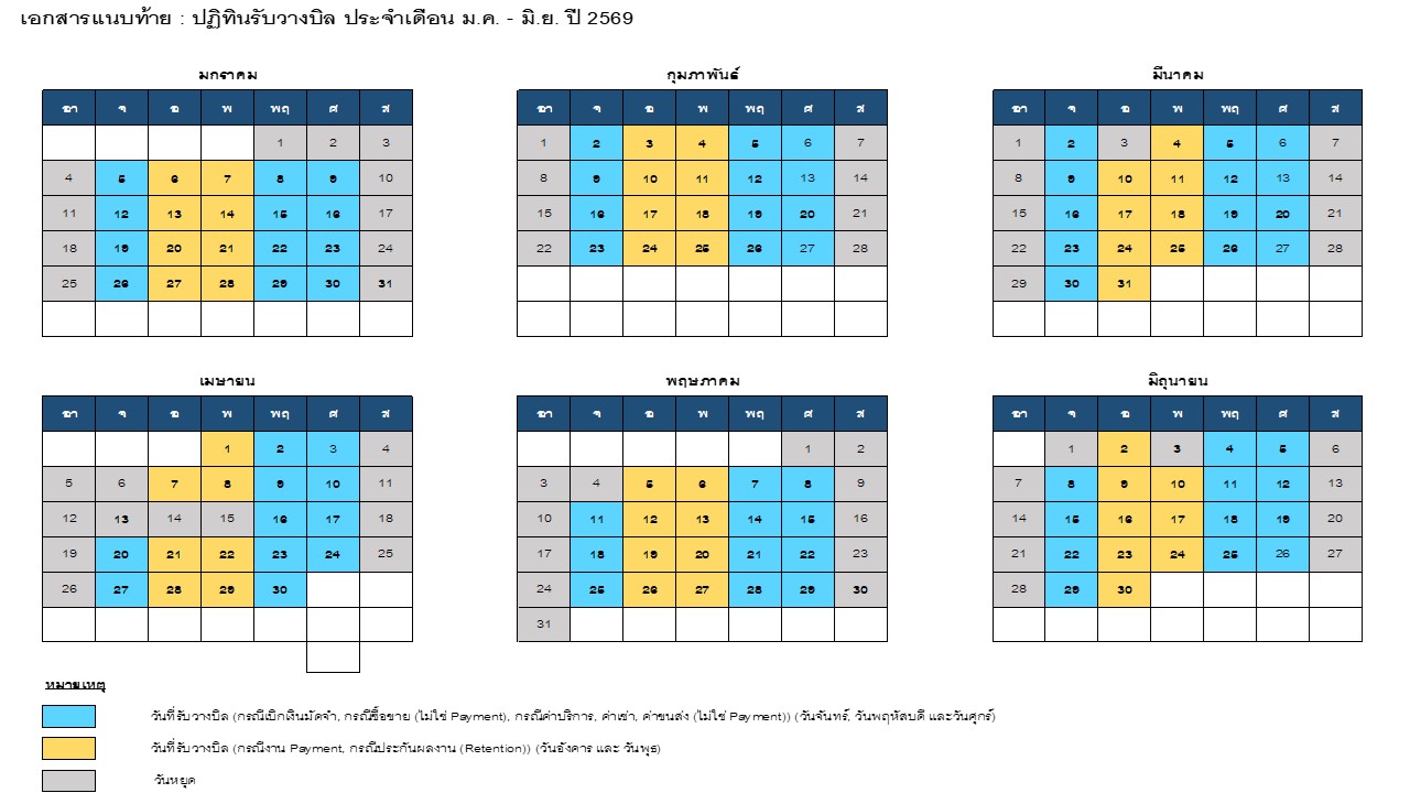 | 1.1 | วันที่รับวางบิล : | วันจันทร์ – วันศุกร์ โดยแยกตามประเภทงาน ดังนี้ | |||||||