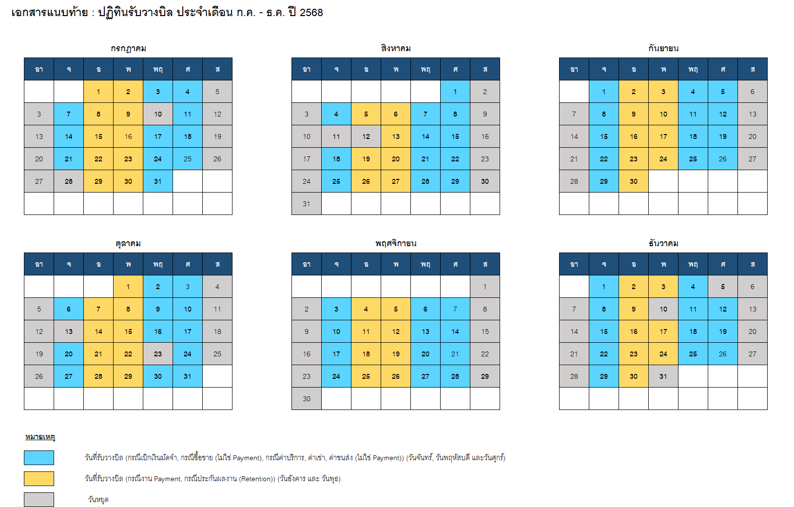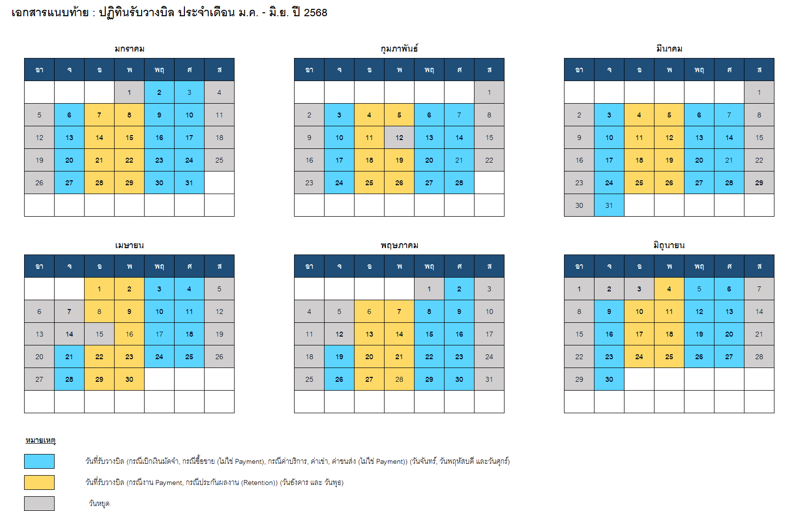 กำหนดการรับวางบิล ประจำปีพ.ศ. 2568